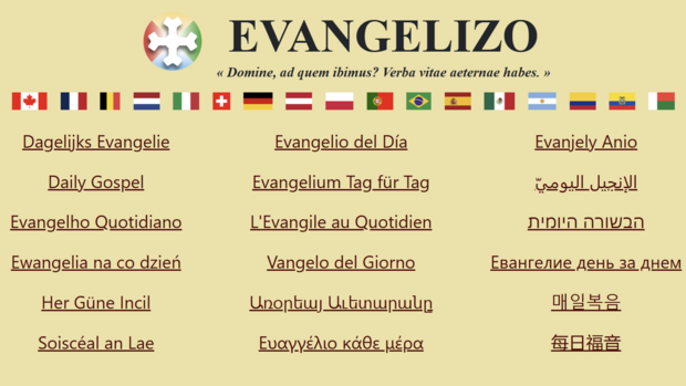 På hjemmesiden www.evangelizo.org kan du få adgang til dagens læsninger på de største sprog – blandt andet engelsk, polsk, arabisk og spansk.